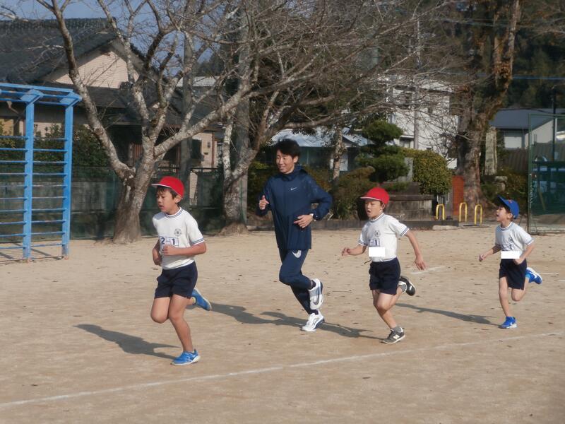 なお、6日(金)にゲストティーチャーとして鶴山さんにおいでいただき走り方の「こつ」を教えていただきました。鶴山さんは、熊本県屈指のマラソンランナーです。子供たちの鶴山さんと一緒に楽しく、かつ、真剣に走る姿はとても素敵でした。