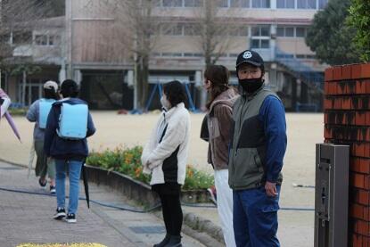本年度最後の朝のあいさつ運動 6年生PTA・PTA本部役員の皆様