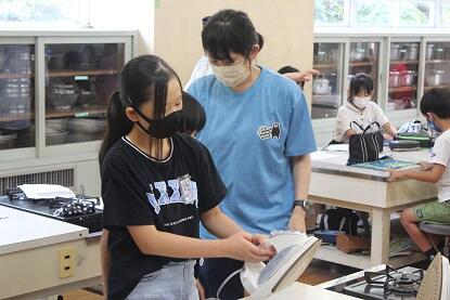 全会は5年1組が地域のみなさんのご協力を受けて、ミシンの学習に取り組んだことをご紹介しました。今日は、5年2組が学習支援ボランティア、そして保護者のみなさんにまでご協力をいただき、ミシンの学習を行いました。