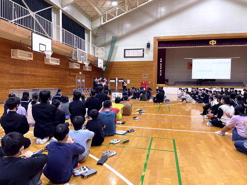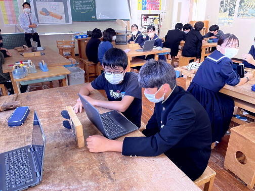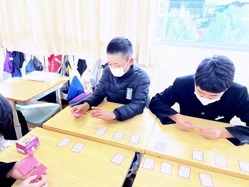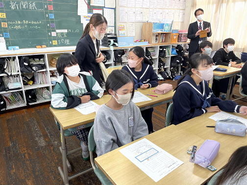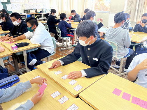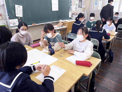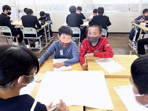 28日、6年生が第一中学校で、人吉東小学校の児童、中学校2年生の生徒とともに交流体験を行いました。
