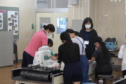 今度はまた、5年1組のミシン学習、また地域の方のお世話に