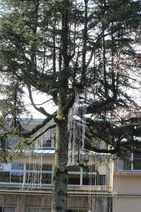 中津留様、山本様、球磨電設の皆様によって、校門のヒマラヤスギ周辺に設置していただきました。