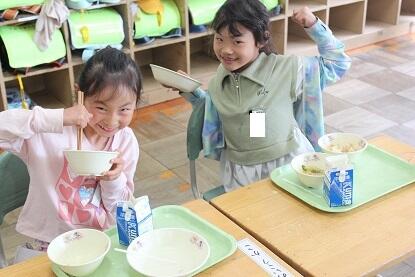 給食中ももりもりと元気に食べています。少しずつ少しずつ、学校生活になれてきたというところでしょうか。