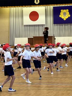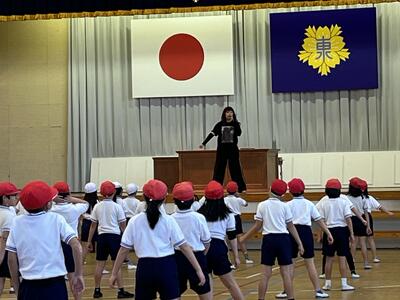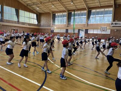 「くまこい」は、運動会で中学年が踊ります。この時期から練習を始めるのは、次の学年を意識させる目的もあり、二年生と三年生が取り組みました。特に三年生は、今年度の運動会で踊っていることもあり、自信をもって踊る姿と二年生に指導する姿が見られました。