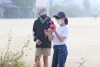 先週は、校庭に咲いている花を集めて教室に飾ろうとする何気ない日常が見られました。こんな姿って、花がいっぱい咲いているからこそ見ることのできる姿ですね。