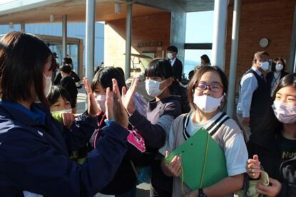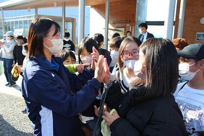 2日間、子供たちに一生懸命に指導していただいた 増田様 とのお別れの瞬間です。増田様は23歳、子供たちとの距離も近く、お姉さんのような存在だったのかもしれません。退所の時には、子供たちが自然とハイタッチをしていました。心の距離が近くなったと言うことでしょう。