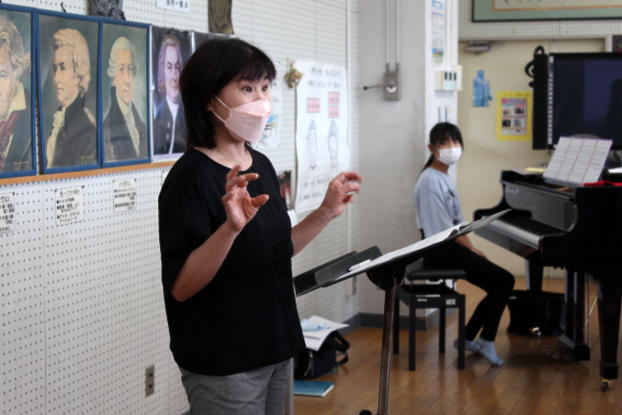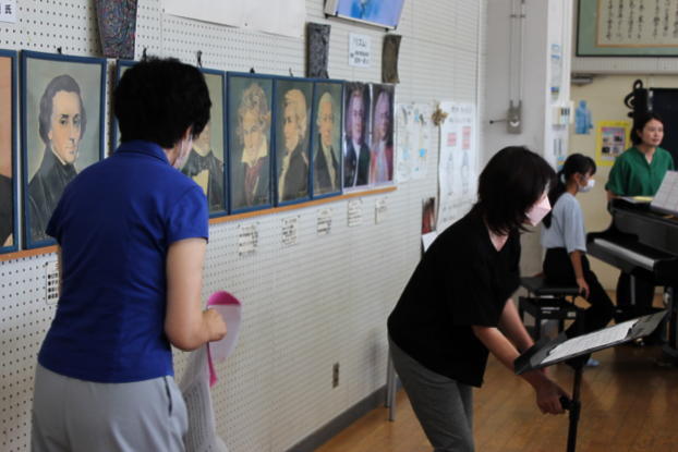 石田親子先生は、子供たちが歌う平面的な歌い方を立体的に見えるよう、指導をしていただきました。6年生の歌声がみるみる立体的に感じられるようになりました。本当に不思議です。