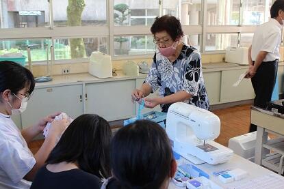 今度はまた、5年1組のミシン学習、また地域の方のお世話に