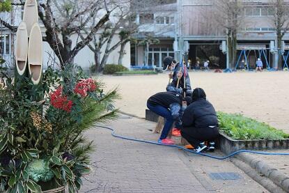 12月11日、PTAのみなさんそして学校支援ボランティアの皆様に門松を作っていただきました。