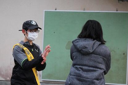 1月10日、始業式の日のあいさつ運動の皆様+一華
