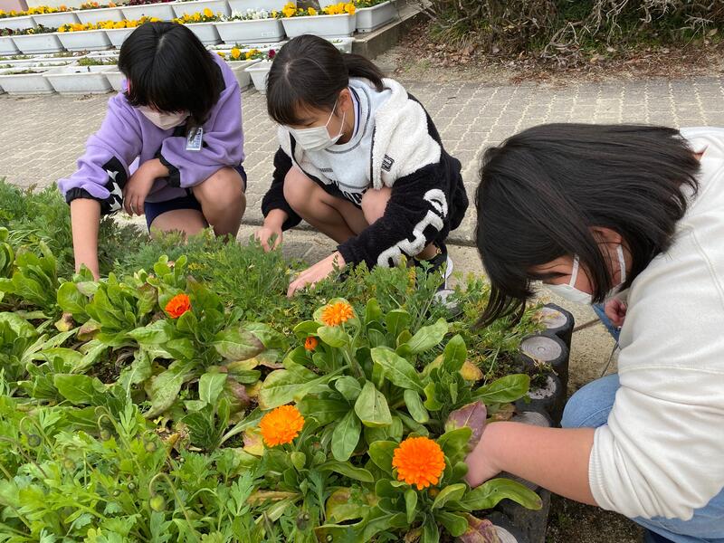 小さかった苗もぐんぐん成長し、菜の花やキンセンカなどの花が咲き始めました。子どもたちは、「可愛い花が咲いている!」と花の成長、開花にとても喜んでいました。小さな花の成長を楽しむ心を、委員会やボランティアで花に関わっている子どもたちだけでなく、校内全体に広げることができるよう、今後も花いっぱい活動に取り組んで参ります。
