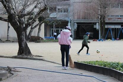 新年に入っても、6年生の子供たちは朝のボランティアを行いつつ、東間小学校にその姿を残し続けてくれています。もちろん、ここに写っている子供たちだけではありません。正門など、あらゆるところでがんばってくれています。