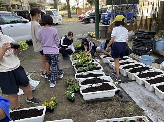 今日、PTAで買っていただいた土を使って、パンジーの苗を植えました。