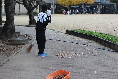 5・6年生も毎朝、ほうきで掃いてくれるのですが、それでも追いつかないくらいの落ち葉です。