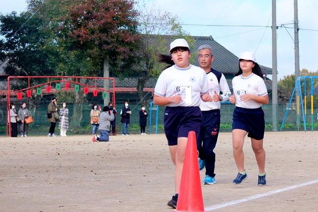 学校運営協議会員の皆様には、持久走大会の様子を参観していただき、応援までいただきました。