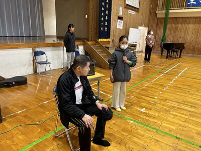 福山さんは全盲の視覚障がい者です。各学校において、児童生徒と伴走体験を行うとともに、ギターを弾き作詞作曲された曲とともに子供たちに勇気あふれる講演活動をしていらっしゃいます。
