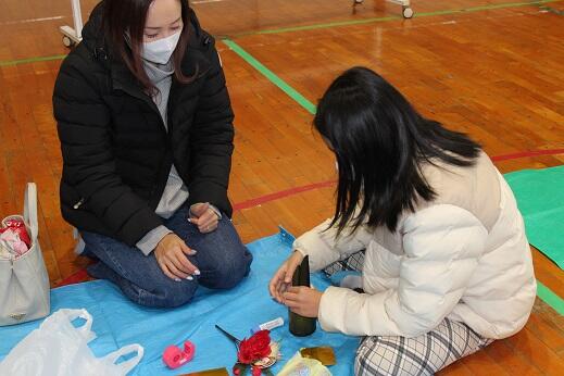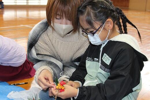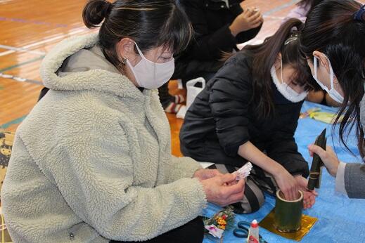 12月27日、PTAによるミニ門松づくりが行われました。たくさんの皆さんが参加し、それぞれ自分なりの門松づくりを行いました。