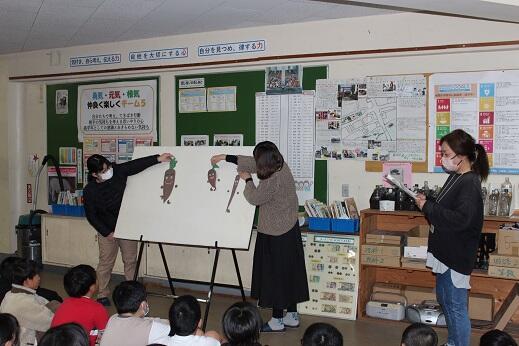 1月26日(金)、朝の全校集会で給食委員会の発表がありました。委員会の子供たちで工夫したクイズ等を行いました。
