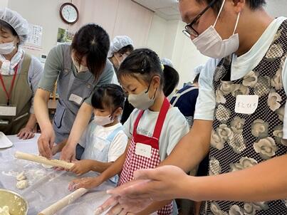 参加してくれた子供の中には、いきなり団子を食べたことがない子も多く、ボランティアの方の説明を真剣に聞きながら、親子で一生懸命に作っていました。