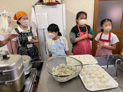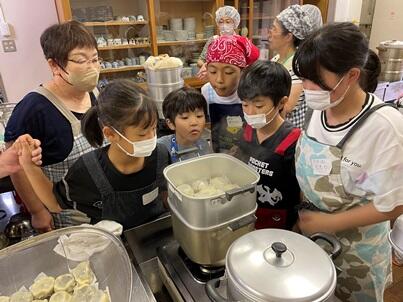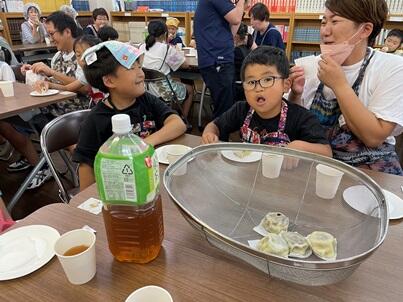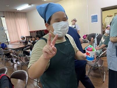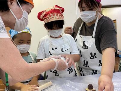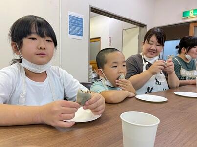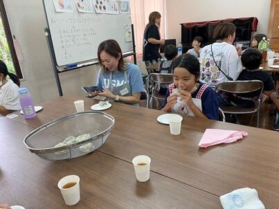 団子が蒸しあがるまでの時間でかき氷を楽しみ、お団子の試食もボランティアの方と一緒にして、作り上げる達成感と親子で触れ合う時間の穏やかさを感じる1日となりました。夏休みの『記憶に残る1日』になってくれると嬉しいです。