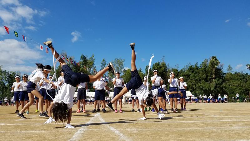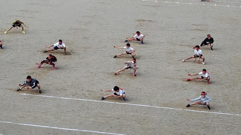 例年、組み体操に取り組んでいましたが、3密を避けるため簡単な一人技を「半沢直樹」のテーマ曲に乗せてソーランの前に取り入れています。