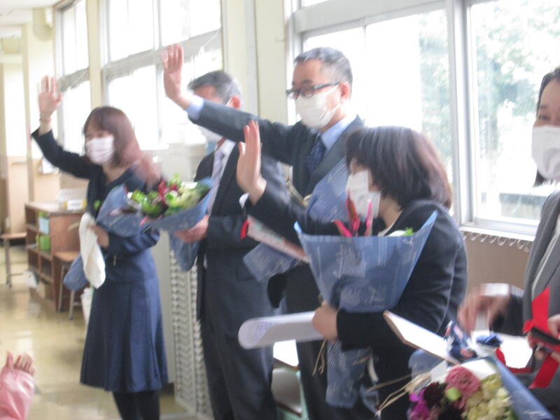 定期異動により、本校から9名の先生方が退職・転出されることになりました。昨日3月30日(火)、退任式をリモートで行い、その後、各教室を回って廊下から子供たちとお別れをしていただきました。退職・転出される先生方、これまで本当にお世話になりました。