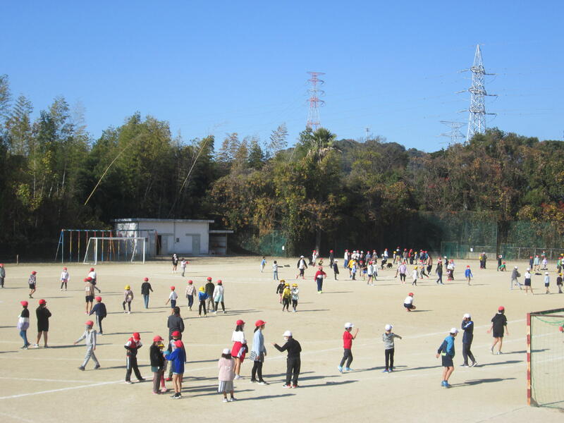 12月13日(月)、小春日和の中、昼休みの運動場に子供たちの歓声が響きました。異学年で交流する機会が少ない子供たちに是非とも経験をさせたい活動です。上級生は、下級生を優しくリードする経験となり、下級生は、上級生へのあこがれや尊敬の気持ちをもつ機会となります。