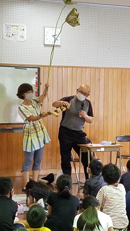 蓮の花がきれいだと、たまに花を折ってしまう人がいるけれども、折ったところから雨水などが入り、土の中のレンコンが腐ってしまうことを聞き、子どもたちの中には、絶対しないぞ!と決意を新たにした子どもたちもいたことでしょう。