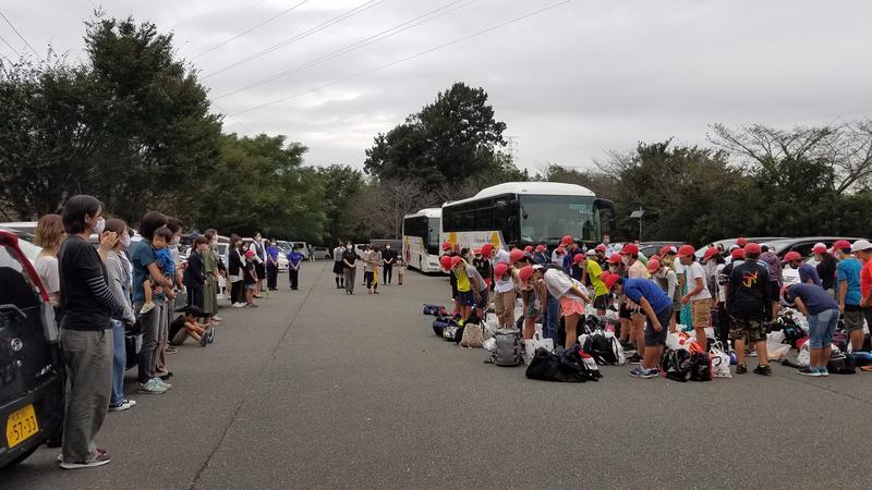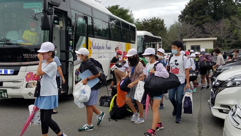 少々疲れは見られたものの、大きな荷物とぎっしり詰まったお土産の袋を両手に持ち、足取りも軽くバスから降りてきた6年生。