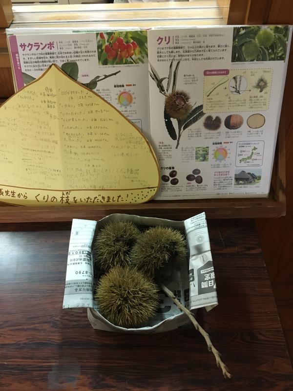 台風10号で枝ごと落ちたものを、校長先生が子どもたちにと持ってきてくださいました。