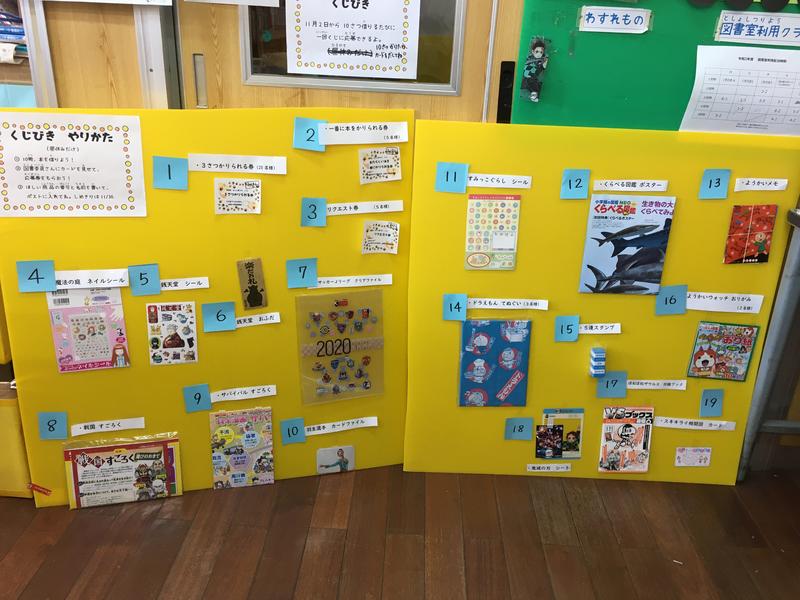 写真は、「くじびき」の景品(本の付録)を選ぶ2年生です。