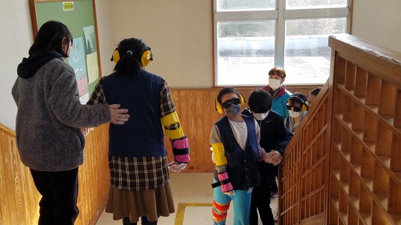 以前、4年生も同様の体験を行いましたが、やはり、6年生の様子には安心感がありました。気遣いの声をかけながら階段の上り下りをすることにより、「共生」の中で大切なものを学んだ子どもたちだったようです。