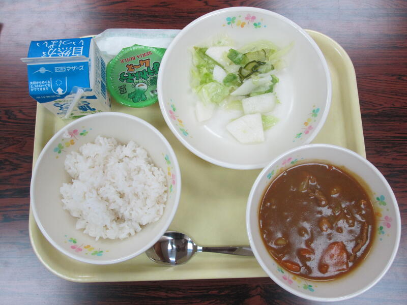今日は、地元の梨を使ったサラダが振る舞われました。さっぱりとしています。献立は、ポークカレーライス、梨のサラダ、ほうれん草ムース、牛乳です。今日も美味しくいただきました。感謝。