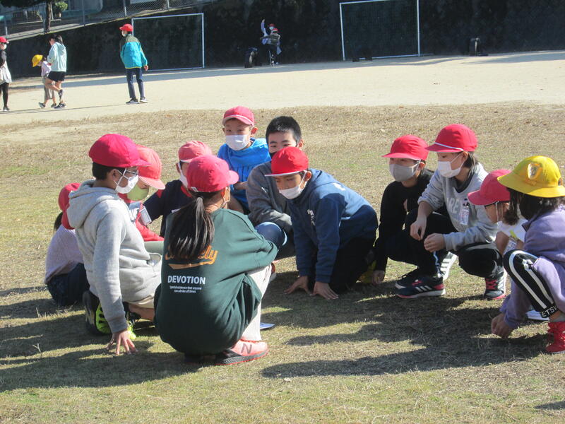 12月13日(月)、小春日和の中、昼休みの運動場に子供たちの歓声が響きました。異学年で交流する機会が少ない子供たちに是非とも経験をさせたい活動です。上級生は、下級生を優しくリードする経験となり、下級生は、上級生へのあこがれや尊敬の気持ちをもつ機会となります。