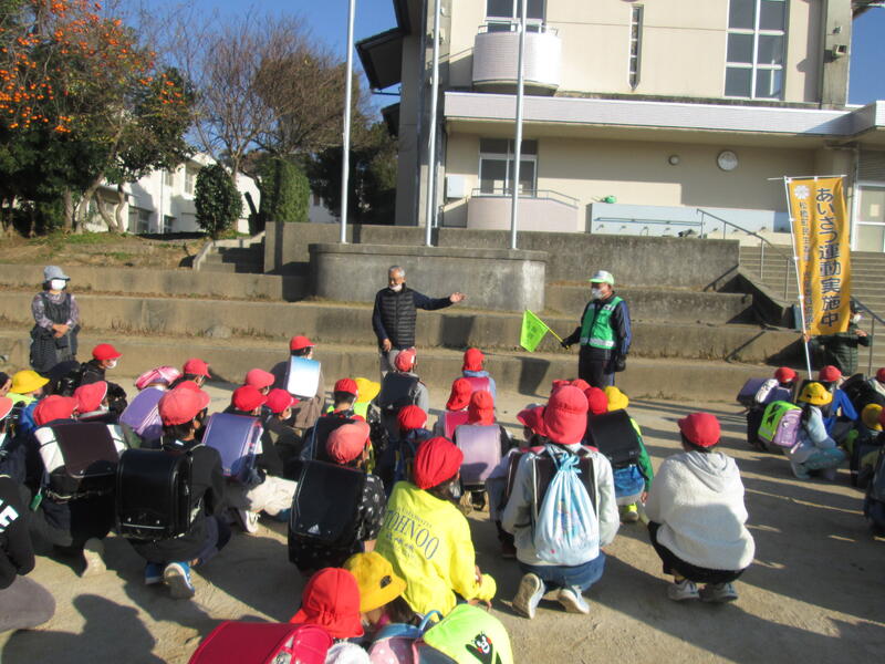 12月22日(水)、地域の方々に見守られ地区毎に下校しました。今回の見守り下校は、先日行われた「学校地域づくり協議会」において、委員の方々から「子供は地域で守れ」という力強いお言葉をいただき、地域の皆様の御協力で実現しました。約50名の方々が子供たちと一緒に歩いてくださいました。心より感謝申し上げます。