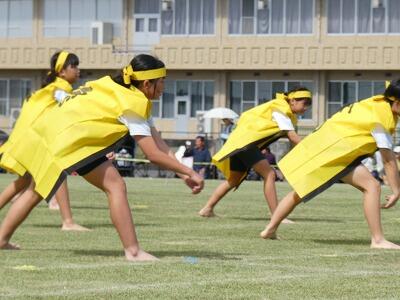 1年生は玉入れ、2年生は大玉転がし、三年生は台風の目、5年生は綱引き、4,6年生はリレーと学年によって違う団体競技はとても迫力があり、見ていた私たちまで「どの組が勝つんだろう」と思いワクワクしながら見ていました 。