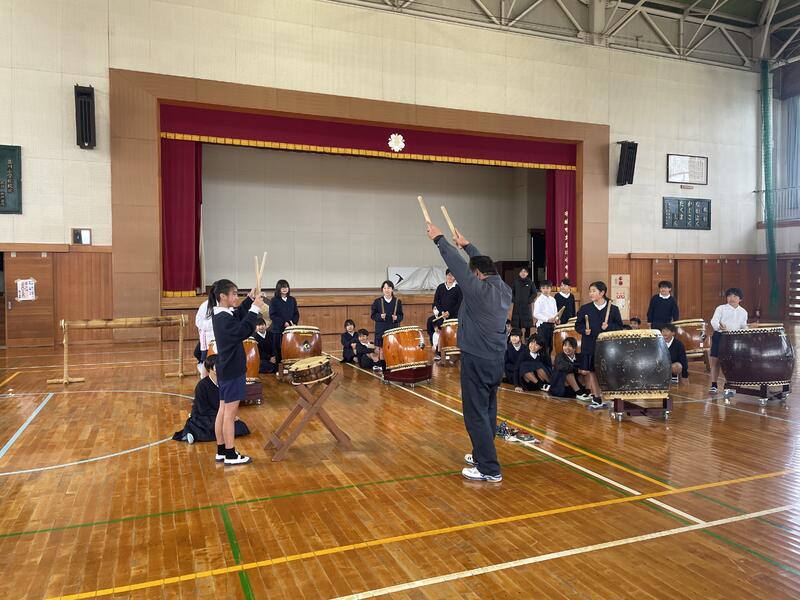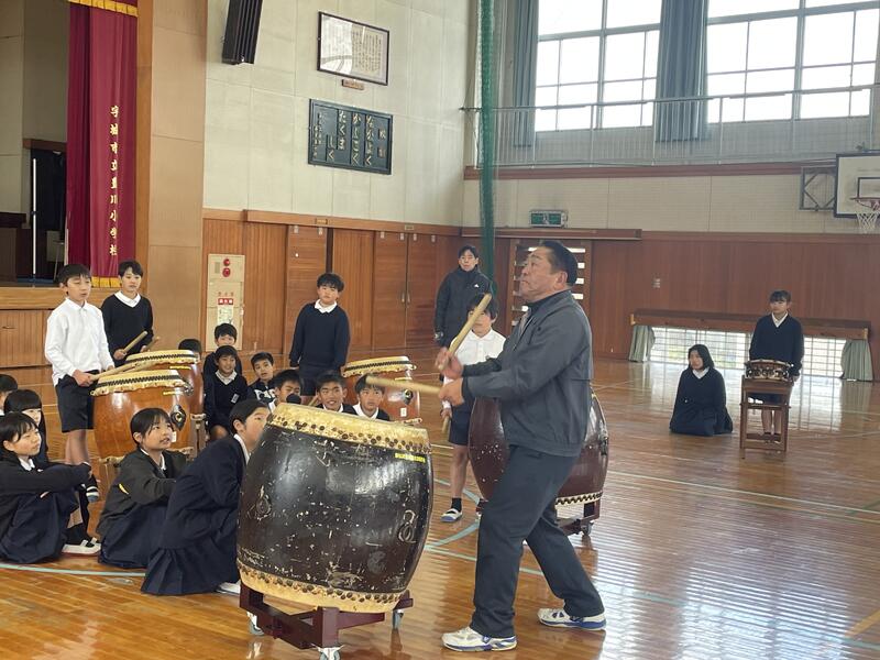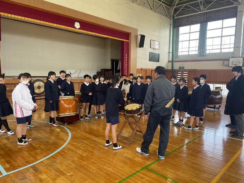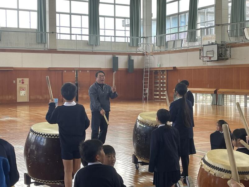 感染症が流行していますが、5年生は2月19日に行われる豊川小まつりに向け、底井樋太鼓の練習が始まりました。毎年、東松崎の中塘さんに指導に来ていただいており、これから約1か月間集中して練習に取り組んでいきます。