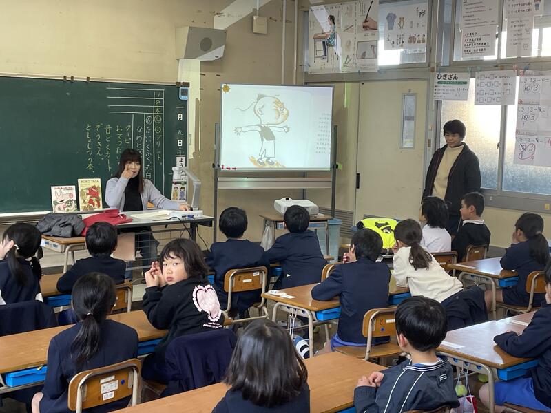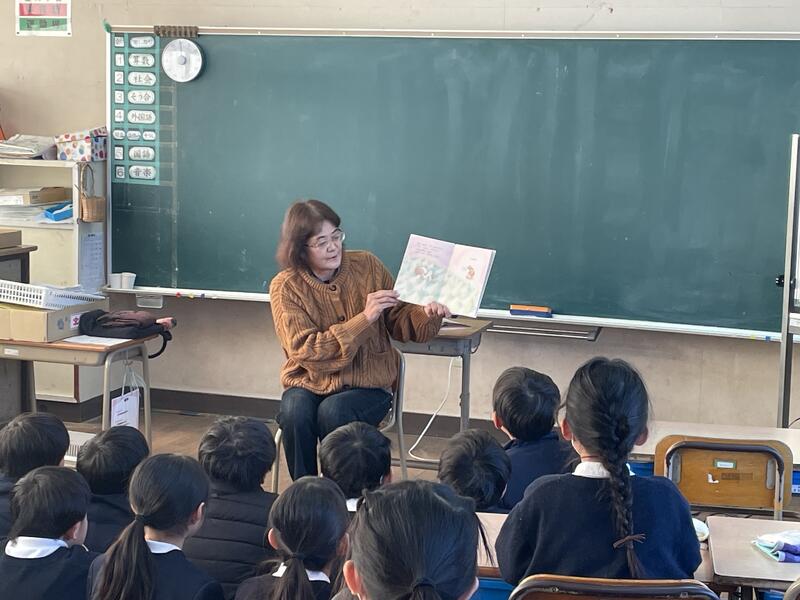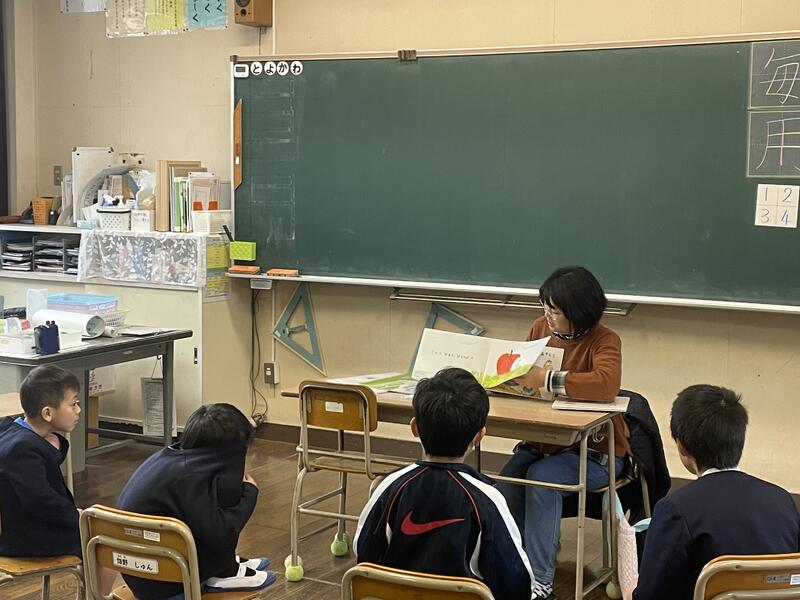 今日は今年最初の花しおりさんによる朝の読み聞かせがあり、各クラスでお話に聞き入っている子供たちの姿が見られました。花しおりのメンバーのみなさん、今年もよろしくお願いします。