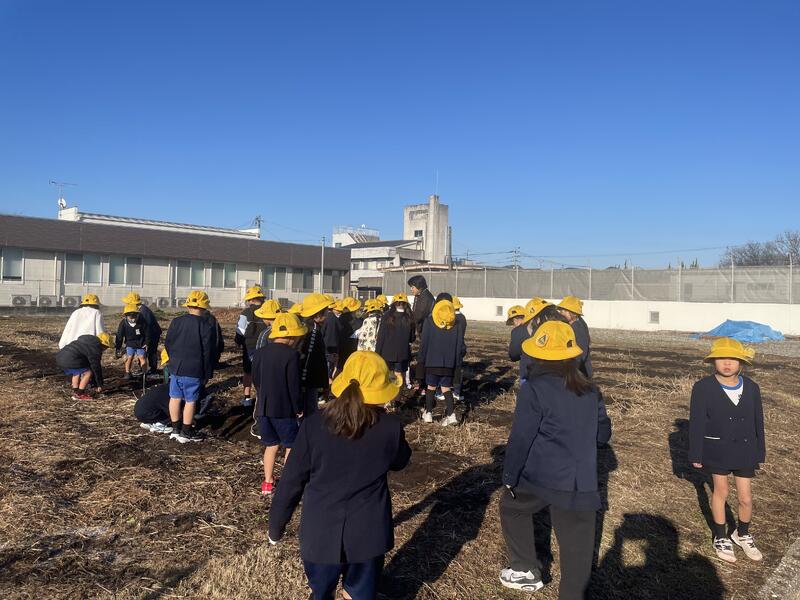 来週各学年で芋植えをする予定になっています。来週月曜日にマルチをはり、火曜日から植える予定でしたが、来週は雨の予報ということで今日働き者の4年生が頑張ってマルチをはってくれました。