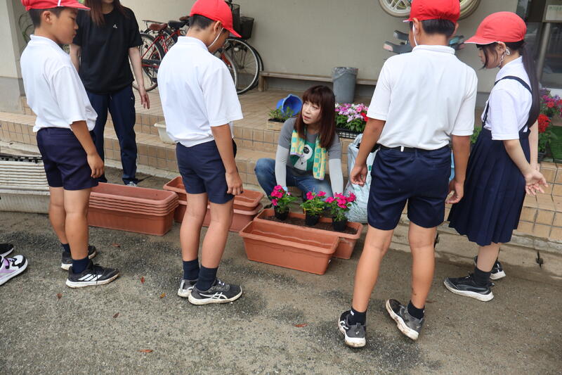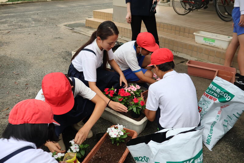 昨日の委員会活動で環境員委員会の子供たちが地域の方にご指導いただきながら花の苗植えをしました。