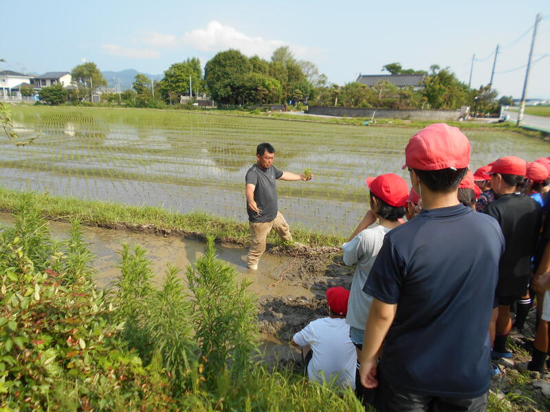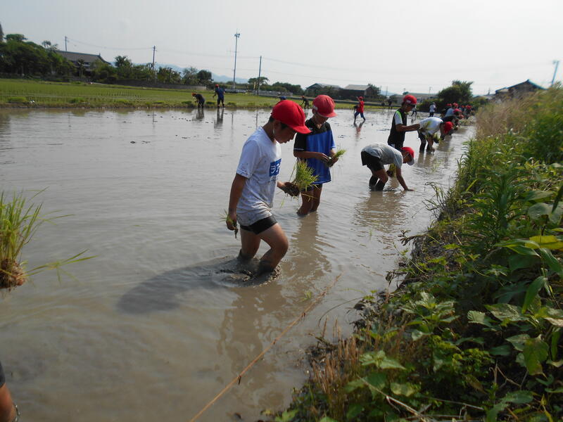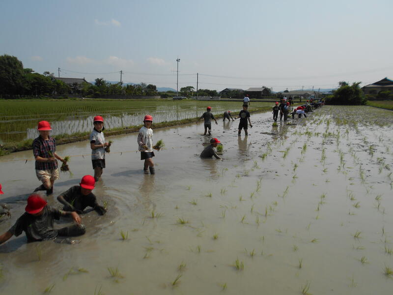 5月に学校で種まきをし、コンクリートの上に苗を置いていたので水かけした水がお湯になり苗が枯れそうになるアクシデントもありましたが、何とか苗を確保し、田植えをすることができました。