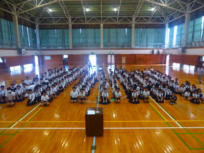 全体練習は体育館で行いました。開閉会式も演技の一つと話される教頭先生の言葉にみんながピリッと反応しました。姿勢がいいです。