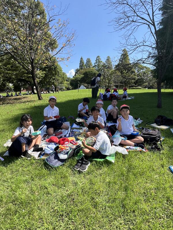 9月30日(火)に1・2年生合同で熊本市動植物園に見学旅行に行ってきました。動植物園では、動物を見たり、レクチャールームで説明を聞いたりした後は、楽しみにしていたお弁当タイムです。おうちの方につくってもらったお弁当をみんなで楽しく食べました。