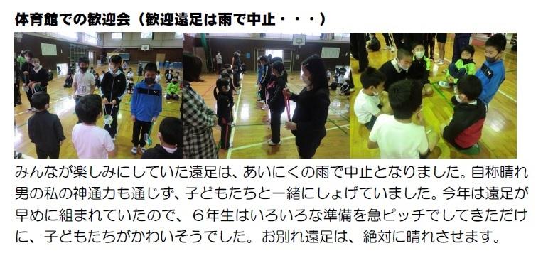 体育館での歓迎会(歓迎遠足は雨で中止・・・)