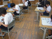 算数「ものとひとのかず」の一人学びの様子です。5分間でホワイトボードに自分の考えを言葉や式・図などを使って、書いています。一人学びの後は、ペアで伝え合い、その後、みんなで学び合いにつなげます。みんな一生懸命頑張っています。
