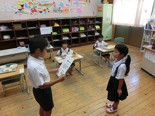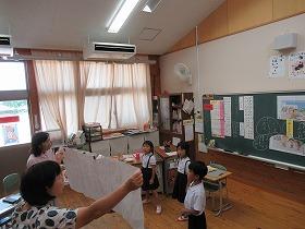 6月19日(水) 5校時に、1年生の子どもたちの幼稚園・保育園の時の先生方に来ていただき、道徳「なんていえばいいのかな」の授業をみてもらいました。子どもたちは、いつもより張り切っていて、保育園の先生からいっぱいほめてもらい、とても喜んでいました。