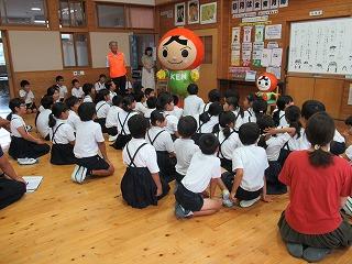 6月26日(水)の3時間目に「人権教室」を実施しました。「仲間を大切にし、いじめや差別をなくしていこうとする気持ちを育てる」ことをねらいに、人権擁護委員さんの話をお聞きしたり、低・高学年に分かれて人権ビデオを視聴して感想を交流したりしました。全校児童全員がしっかり考え、学習にのぞんでいました。最後に、「人権グッズ」のプレゼントや「人権まもるくん」の登場で、とても喜んでいた子どもたちです。とても心に響く、心温まる時間となりました。