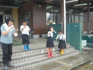 昨日の生活科の時間には、みんなで「しゃぼんだま遊び」を楽しみました。はさみで切り込みを入れたすとろーや、数本のストローをセロテープで合わせたものにしゃぼん玉液につけて飛ばしました。子どもたちの日頃の行いがいいために雨も止み、運動場で飛ばすことができて、みんな笑顔でとても嬉しかったです。遊んだ後は、学習シートに活動のまとめを書きました。とても楽しい時間となりなした。
