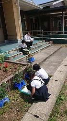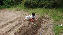 今年は、植木鉢でミニトマト、学級園でキュウリ、そして、畑ではナスとピーマンを育てています。それに加えて、サトイモの苗を植えました。畑で育てますので、水やりを忘れないように頑張ります。