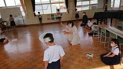 2・3年生は、休み中も、国語教科書の音読をがんばっていました。今日は、その成果を発表する音読発表会でした。頭にはお面をつけ、音を出すところではシンバルや小太鼓を鳴らしながら雰囲気もバッチリでした。広い音楽室の窓を開け、隣の人との間隔(ソーシャルディスタンス)も空けてやったので、大きな声で発表することができました。声の強弱・速さ・表情など、一人一人に工夫もみられました。家で、しっかり練習したのが分かりました。